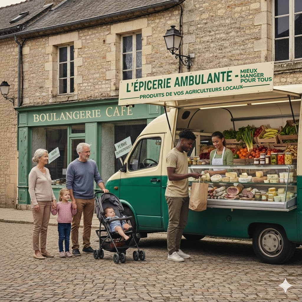 Une épicerie mobile apporte la solution directement dans les villages et quartiers isolés. Elle est le lien concret entre l’offre de produits locaux, frais et de saison et les habitants éloignés des commerces. Là où les commerces ont disparu, notre épicerie mobile ramène de la présence, du lien et une alimentation de proximité. Un service itinérant qui relie les familles, les villages et leurs producteurs.